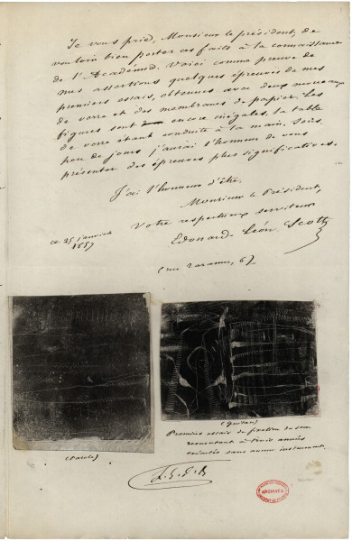 L'ingénieur Édouard-Léon Scott de Martinville avait déposé deux plis cachetés à l'Académie des sciences :